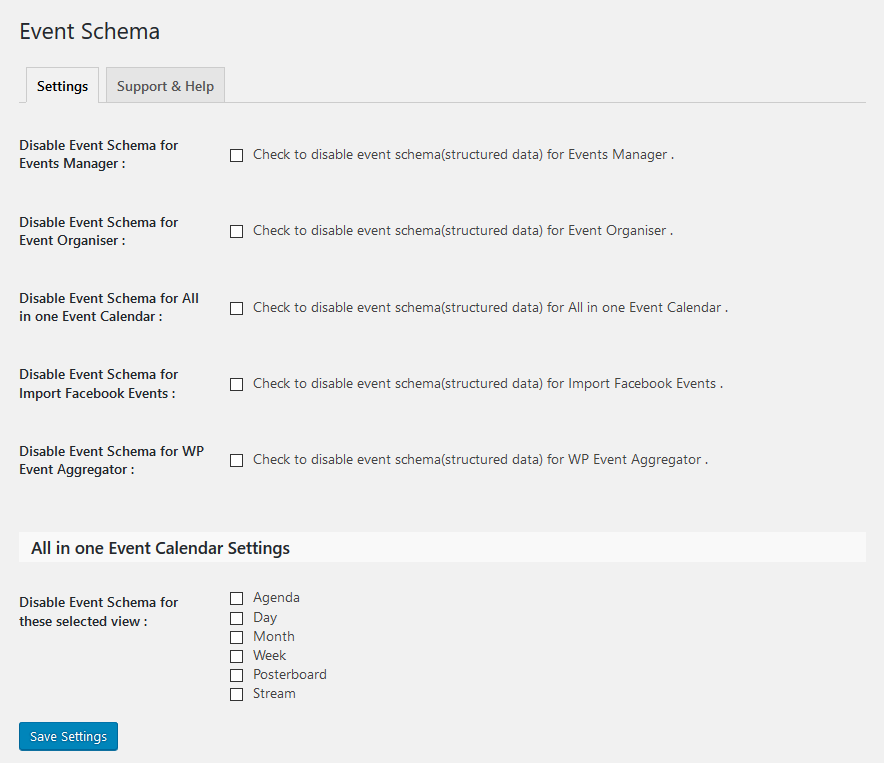 No configuration required for this plugin its work automatically, you can disable schema from “Settings”->”Event Schema”