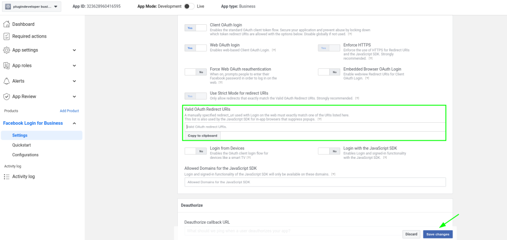 Go to the Plug-in setting page on your website and copy “OAuth Redirect URLs“
