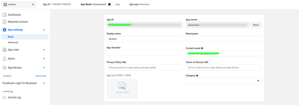 Once Done, In Settings-> Basic Settings menu copy and paste Facebook “App ID & App Secret” in the plug-in settings page on your website and save the change.