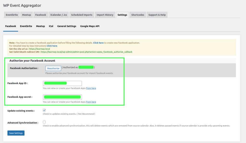 How to Create a Facebook Application and Authorize with Facebook For Importing Facebook Events using Import Social Event WordPress plugin