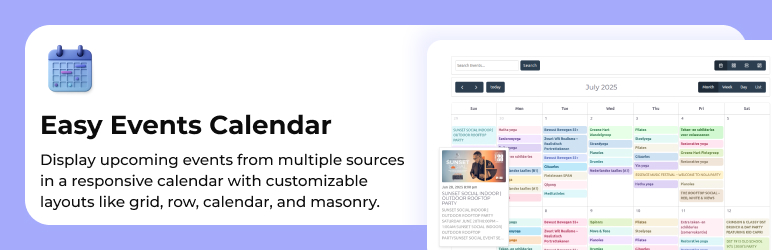 Easy Events Calendar lets you showcase your events beautifully in multiple layouts β whether you’re importing from Eventbrite, Facebook, Meetup, or WP Event Aggregator.