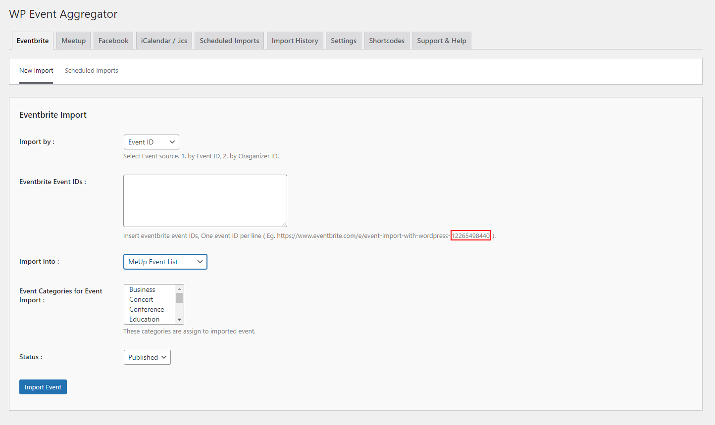 - Install & Activate “WP Event Aggregator” and “WP Event Aggregator Pro” plugins