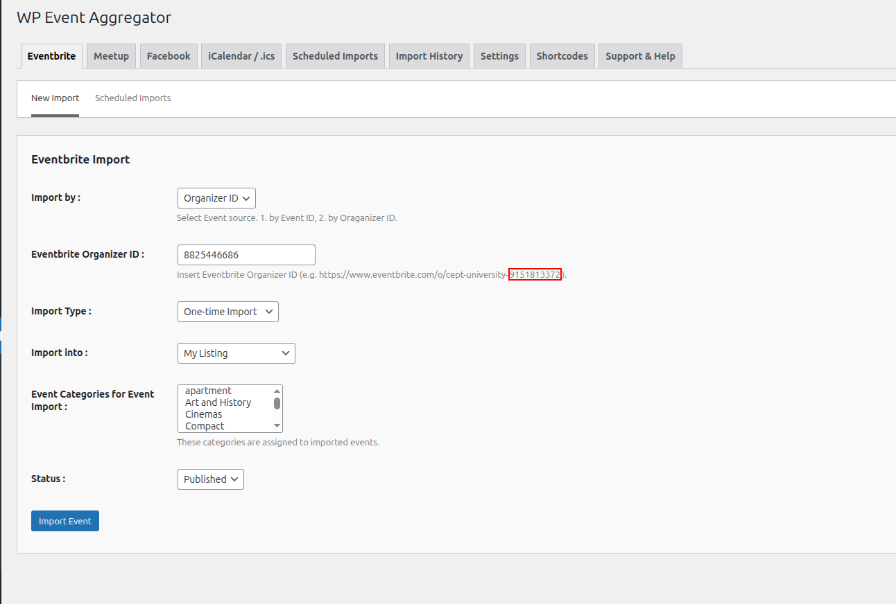 My Listing for WP Events Aggregator.